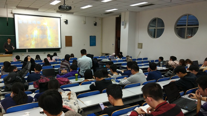 本次安全教育由辅导员韩思阳主讲。主要围绕在学校如何防火,对轻微火情紧急应付手段,遭遇火灾如何正确脱险进行了知识普及,引发大家的讨论。在讨论中,导员带领大家总结了平时应该注意的一些问题细节,如:自觉爱护校内各种消防设施,在教室宿舍随手关闭电源,不私拉电线,学会简单自救等。
