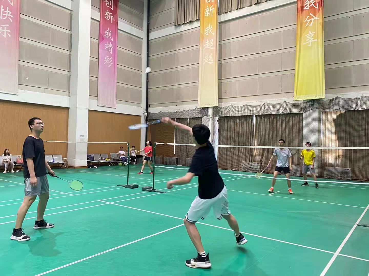 身着运动装的同学们在比赛各个环节中都表现出了顽强拼搏的竞技状态,勇于在球场上表现自我。同学们精彩的扣杀、放小球、高远球相互结合,给观众带来一场又一场的精彩球赛。