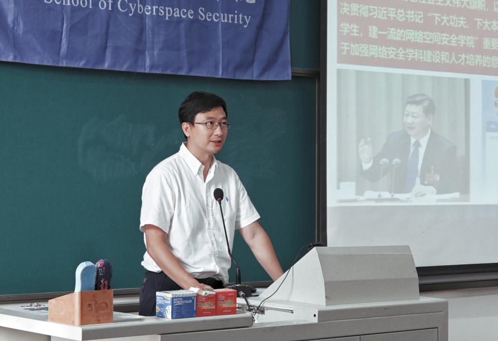 随后,张熙副院长向新生们介绍了学院的发展历程、教学管理和科研实力。他寄语网安新生踏实学习、勇于创新,以“网络强国 网信报国”为己任,为国家安全事业贡献青春力量。