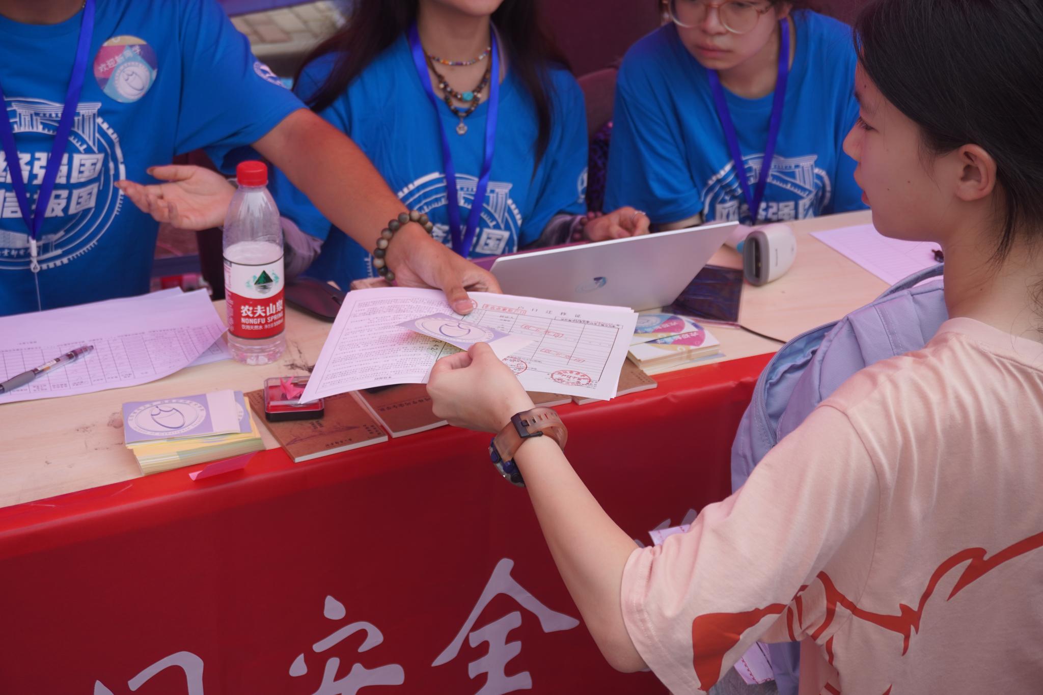 迎新的前一天,志愿者们就已经忙碌了起来,几十名志愿者开始进行物资准备工作,为第二天的迎新活动准备材料并布置了报到处。第二天,到了正式迎新的日子,百余名志愿者更是坚守自己的岗位,或是在校门口接车、或是为新生们搬运行李并引导新生到宿舍和报道处报到。尽管九月的天气仍有余热,志愿者们依然不辞辛苦,全心全意为新生及家长答疑解惑,以自己真诚热情的微笑化解新生们的紧张。